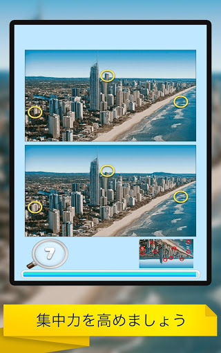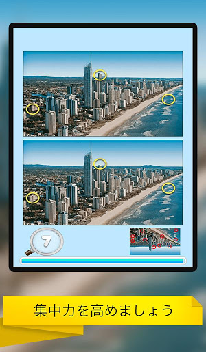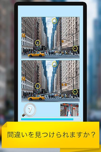 ゲームの間違い探し : 都市で集中力と観戦スキルを向上させましょう。 時間がなくなる前に、2つの都市の写真の間に隠された10の違いをすべて見つけてください。 あなたがそれを見つけるのが早ければ、あなたは高いスコアを達成するでしょう。