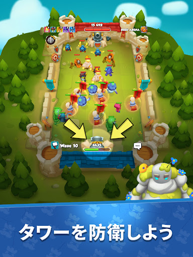『Rush Arena』は、有名な『Rush Royale』の世界で繰り広げられる新しいタワーディフェンスゲーム!ラーンダームの島々が舞台ですが...ゲームプレイは同じではありません!タワーディフェンスのメカニズムが一新されています。プレイ方法は簡単に習得でき、楽しみながらマスターできます!