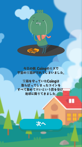 宝箱を守っていたCoingは散らばってしまったコインをすべて集めて来いという罰を受け、地球に降りてきました。