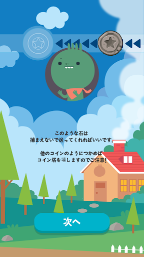 宝箱から転がって来ているコインが丸の真ん中を通る時、画面をタッチすると、コイン塔を積むことができます。