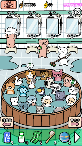 - 動物が増えるほど人気のスパになります。最高レベル達成にチャレンジしてみましょう。