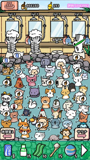 『アニマルスパ』は、お風呂に入りたい動物を招待して、大きくて有名な温泉をつくる癒し系+放置系ゲームです。様々な動物を集めて、お風呂施設を買い、オリジナル温泉をデザインしてみましょう。木の湯、銀の湯、大理石の湯、金の湯など、多彩な温泉が揃っています。お風呂に入る動物をただ見ているだけでも楽しめます。動物が勝手にスパの使用料を支払ってくれるからです!