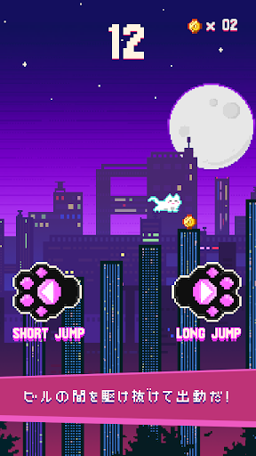 簡単な操作で自分だけのねこヒーローと一緒に飛び回る準備はもうできた? ビルの間に落っこちないように気をつけて!