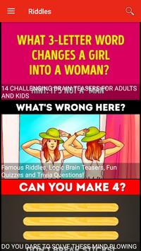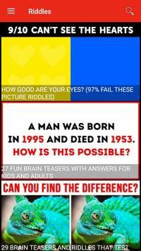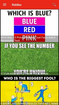 With thousands of rebus puzzles, riddles and brain teasers, this Riddles app is as interesting as it gets! Watch all kinds of riddles and Brain Teasers from funny riddles to logical ones! You can also Search for riddles and brain teasers! There are 5000 riddles and brain teasers. Rack your brains and watch different types of riddles based and brain teasers. Share your favorite riddle or brain teaser with your friends and family.