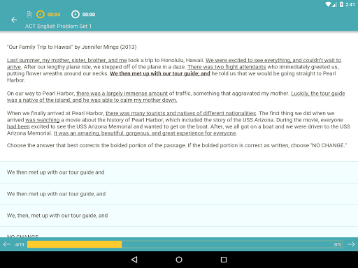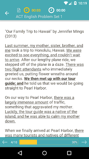 포괄적 인 학습 도구가있는 36을 목표로합니다. 학생들은 Act English, Act Math, Act Reading 및 Act Science에서 테스트를 통해 특정 문제 영역에 시간을 보낸 정규 연습 시험 또는 집에있는 모든 문제를 수행하여 실제 시험을 복제하기위한 전문적으로 작성된 질문을 수행 할 수 있습니다.