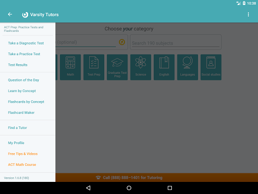 귀하의 ACT 점수는 대학이 귀하의 신청서, 신청서, 당신이 자격이있는 장학금. Android 기반 스마트 폰 및 태블릿을위한 Varsity Tutors의 Free Act Prep Prep 앱을 통해 테스트 당일 자신감을 키우고 성공을 준비 할 수 있습니다.
