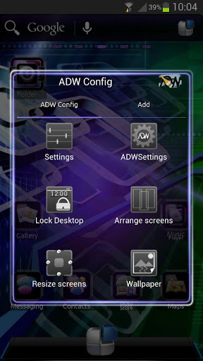 최신 버전 (ADW 또는 ADW EX 실행기)는 테마를 적용하려면 설치되어 있어야합니다. 이 응용 프로그램은 무료이며 Play 스토어에서 사용할 수 있습니다.