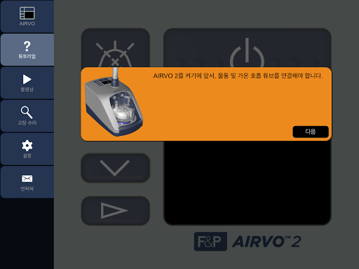 이 앱은 최신 버전 Airvo의 작동방법을 교육하기 위해 Airvo2의 사용자 인터페이스의 시물레이션을 제공합니다.