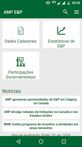 정보는 다음과 같이 구성됩니다 : 뉴스; 착취 및 생산 통계; 탐사 및 생산의 지적 데이터; 정부 홀딩스.