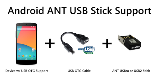 -"USB1"과 호환되지 않습니다.개미 스틱 (죄송합니다. 많은 사람들이 이것을 원하지만 USB1은 새로운 버전과 호환되지 않는 다른 USB 컨트롤러를 사용합니다.Play Store를 사용하면이 ANT USB 서비스를 휴대 전화에 설치할 수 있으며 휴대 전화는 USB 호스트를 지원해야하며 필요한 모든 것은 USB OTG 케이블과 ANT USB 스틱입니다.자세한 요구 사항은 http://www.thisisant.com/consumer/ant-101/ant-in-phones/.