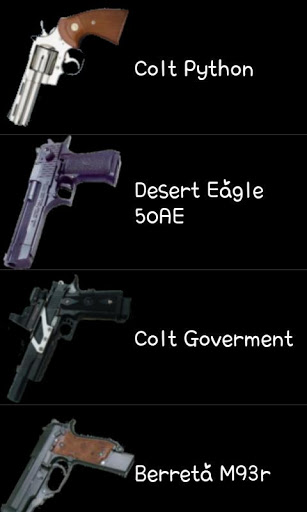 You can shoot eight kinds of guns including a handgun and the shotgun and etc, by default.