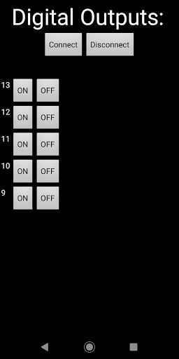 The second option "Control of digital outputs in Arduino" independently controls 5 digital outputs of the board. What you control with these 5 outputs goes from to turn on/off simple LEDs, until motors !! The limit is your imagination. In a later version is intended to include all outputs. This option requires to record the program (included in the app) into Arduino board and follow the recommended circuit.