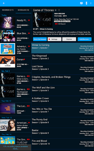 Browse or search your personal TV programming guide to find your favorite shows. Schedule one-time or series recordings on your DVR at home.