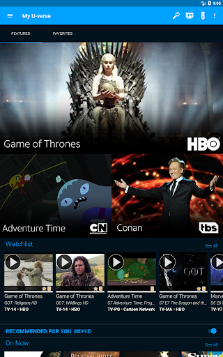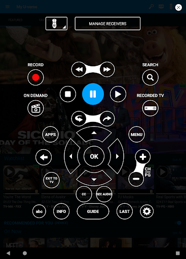 Take the U-verse experience with you with the U-verse App. Watch Live TV and On Demand shows, manage your DVR, and use the app as a remote control.