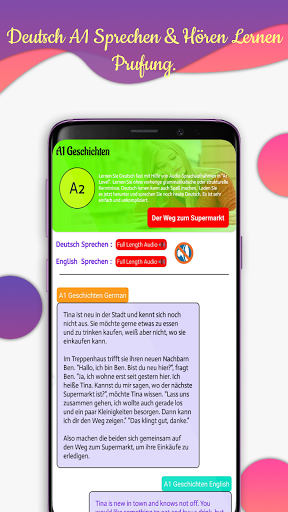 이야기에 관심이 있고 독일어를 배우고 싶다면 이것이 당신에게 완벽한 선택입니다.스토리를위한 간단한 오디오 언어 녹음을 통해 독일어를 빠르고 쉽게 이해하고 말하며 원어민과 쉽게 대화 할 수 있습니다."독일 A1 Speak & amp;시험을 듣는 법을 배우십시오. & quot;오디오 녹음의 도움으로 독일어를 배우고 싶은 사람들에게 훌륭한 앱입니다.학생들에게도 유용합니다.독일어 A1A2B1B2는 당신에게 완벽한 선택입니다.