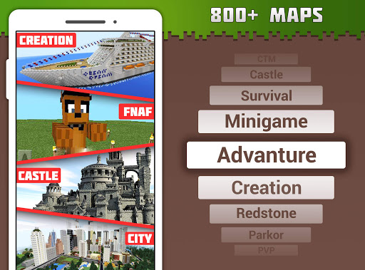 Parkour지도 | Redstone지도 | 롤러 코스터 맵 | 도시지도 | 퍼즐 맵 | 럭키 블록 레이스 | MCPE의 도시지도 | PVP지도 | 생존지도 | 지도 숨기기 및 찾기 | 건축 맵 | 저택지도 | 창조 맵 | 성