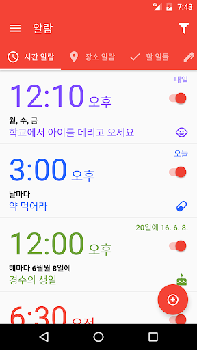 • 일어나기·약 먹기·학교에서 아이 데리고 오기 같은 맨날 하는 일은 물론, 생일·자동차 리뷰·려행 같은 가끔 있는 일까지 알려드립니다.