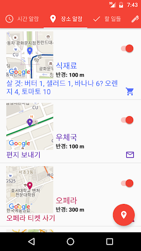 • 지정한 곳에 가면 알람을 울리거나 메모를 보여드립니다.
