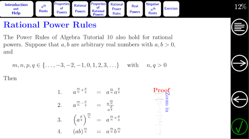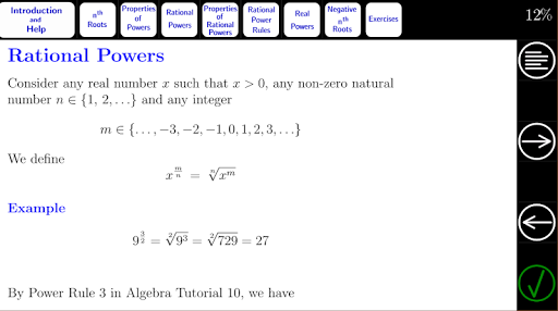 In this tutorial, we extend integer powers to rational powers, and we see that the power rules of Algebra Tutorial 10 also apply to rational powers.