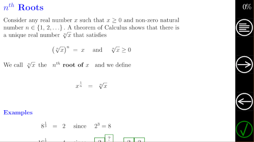 * Studying mathematics is best done by working through examples and exercises. There are many interactive examples and exercises in this tutorial that must be completed to achieve 100% progress.
