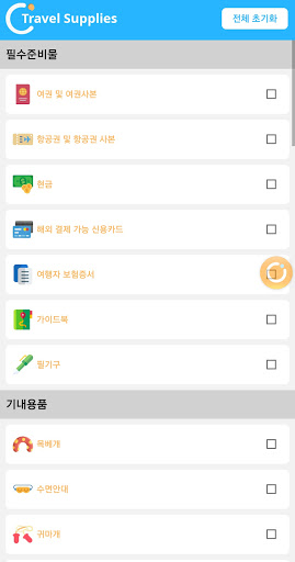 - 여행준비물(사용자가 직접 체크하여 준비상태를 완료하고 표시하는 기능)