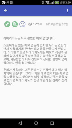 스토어에는 많은 메모 앱들이 있지만 우리는 간단하면서 사용하기에 무난한 메모 앱을 만들고자 했습니다. 이러한 의도로 아메리카노에는 메모의 작성과 관리에 있어서 필요한 최소한의 기능만을 포함하고 있으며, 사용방법이 너무 간단하여 상세한 설명이 굳이 필요하지 않을 정도입니다.