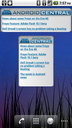 The android Central widget A very basic widget that gives you the latest headlines from AndroidCentral.com and opens them in your browser note This is a WIDGET, not an app. Don39;t complain if it quot;won39;t run.quot; :p Need help? email us531 v. 1.4: New sizes 4x1, 2x2. You should now get error msg. if you lose network connection, instead of crashing.