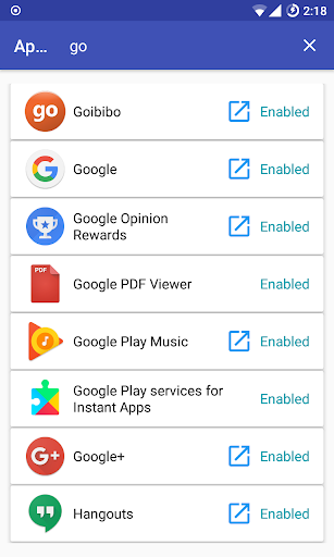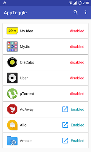 When needed disabled apps can be enabled back by simply tapping on disabled app.