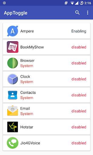 Disclaimer : Use with caution. If user disables critical system apps required by device to run properly then it can lead to unusable device. By installing AppToggle, you assume responsibility for all damages that may be caused by the use of this app