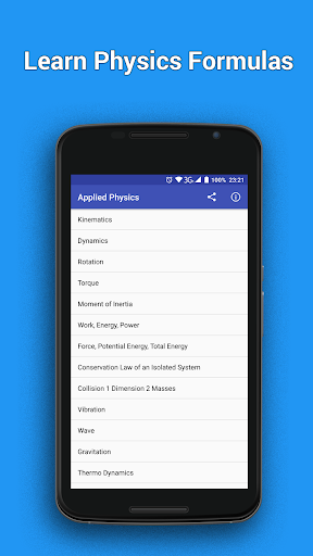 Topics such as kinematics, dynamics, vibration and rotation just to name a few. You can also browse for physical constants and units. Supports 5 major languages such as English, German, French, Spanish and Portuguese. Includes a Video how to use the Motion Equation in Physics and a simple acceleration calculator.