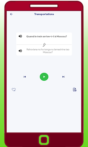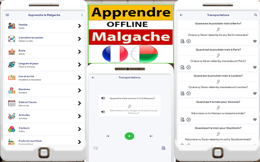 Malagasy Francais maimaim-Poana ho an'ny rehetra mpampiasa. Afaka mianatra sarotra fehezan-teny sy andian-teny tsy fotoana. Malagasy fampiharana no tsara ho an'ny mpandraharaha sy ny mpandeha mba hianatra ny fototry ny teny vahiny. Ireo mpampiasa dia afaka mianatra ny teny Malagasy sy ny mora indrindra, ary fomba tsara indrindra ny hianatra ny teny Malagasy dia abidy sy ny fitsipi-pitenenana ho an'ny beginners. Malagasy Francais dia manampy ihany koa ny fianarana teny sy ny Voambolana. Miasa nahay tany an-tserasera ary koa ny ivelan'ny aterineto fomba.