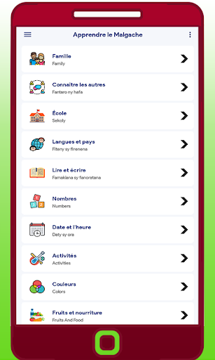 Langue Malgache a très simples fonctionnalités et facile à utiliser. Langue Français Malgache est la meilleure application pour apprendre la prononciation Malgache pour les débutants. Vous pouvez en apprendre davantage sur les noms de fruits et de légumes rapidement. Vous pouvez facilement apprendre des phrases communes prononciation et bases alphabets. Apprendre Le Malgache l'application consomme moins d'espace dans votre mobile.