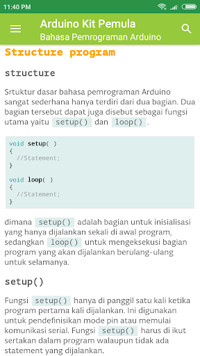 Tutorial untuk belajar Arduino cocok bagi pemula, dilengkapi dengan proyek latihan Arduino dari tingkat yang dasar hingga menengah, selain itu juga terdapat fitur untuk mempraktekan langsung dengan mengisi program (upload sketch) ke papan Arduino melalui USB/Bluetooh dari aplikasi ini.