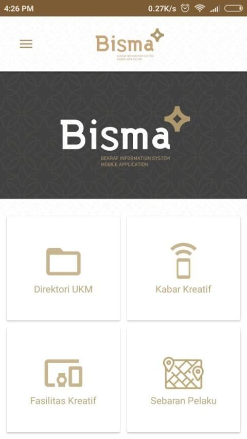 Bekraf Information System on Mobile Application (BISMA) is an application developed creative information to promote the Creative Economy Agency Creative Enterprises in Indonesia