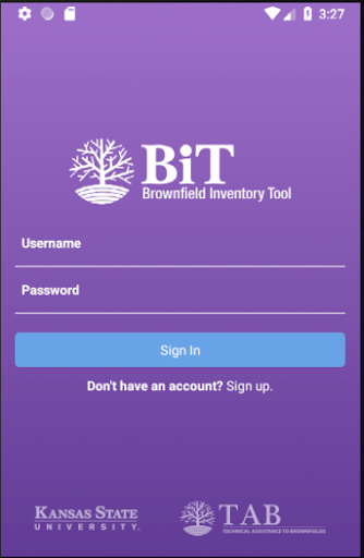 비트 모바일을 사용하여 계정이 있어야하며 Bit Web의 온라인 버전의 프로그램. 비트 웹 및 비트 모바일 사용에 대한 자세한 내용은 Brownfields (TAB) 지원 페이지에 대한 KSUAS State University (KSU) 기술 지원으로 이동하십시오.