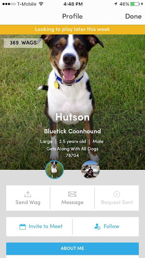개를위한 프로필을 만들고 가까운 다른 사람들을보십시오!놀이 날짜를 위해 Wags, 메시지를 보내거나 다른 사람들을 초대하십시오!