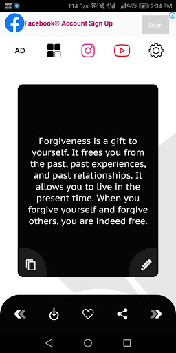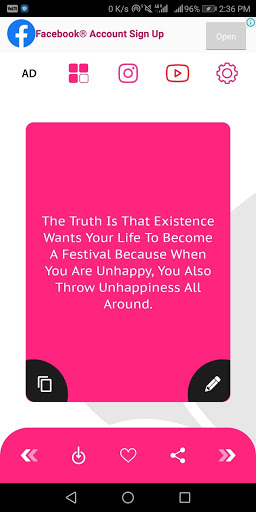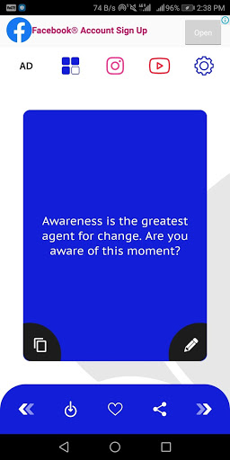 • 스 와이프 & 다음 옵션을 사용하여 많은 따옴표를 볼 수 있습니다. • 소셜 미디어를 공유하는 공유 옵션. • 평화로운 자연 음악을 재생 / 일시 중지합니다.