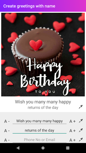 == 생일 상태를 설정하거나 생일 이미지를 공유하십시오 & wishes == 친구 & 가족에게 HD 생일 이미지를 공유하십시오.이 앱을 사용하면 생일 소원을 한 번 사용할 수 있습니다.이름, 모바일 아니, 이메일 주소 등 생일 인사말 아래 - 생일 소원으로 인사말 만들기