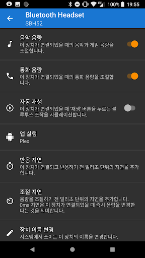 블루투스 음량 매니저는 블루투스 디바이스가 연결되거나 연결 해제될 때 어떻게 반응할지 설정할 수 있습니다.