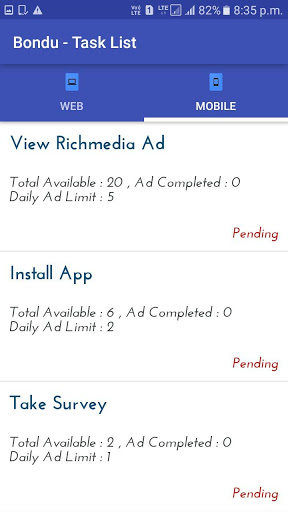 You can see web page ads, video ads, surveys, mobile ads and download small apps for making real money.