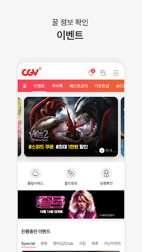 - CGV에서 진행중인 이벤트와 할인 정보를 한눈에 확인 할 수 있어요.