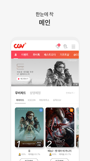 이제 CGV앱으로 더욱 풍부한 영화 정보와 편리해진 예매를 만나보세요.