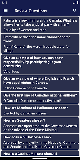 검토 질문.오프라인 발음.공식 캐나다 시민권 시험 연구 가이드를 기반으로 한 플래시 카드.