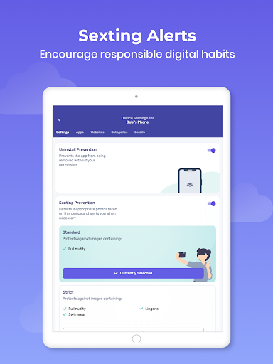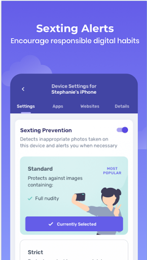 보호 된 장치에서 카메라를 모니터링하여 자녀가 부적절한 사진을 공유하지 못하도록하고 즉시 즉시 알려줍니다.위험한 사진이 감지 된 경우.