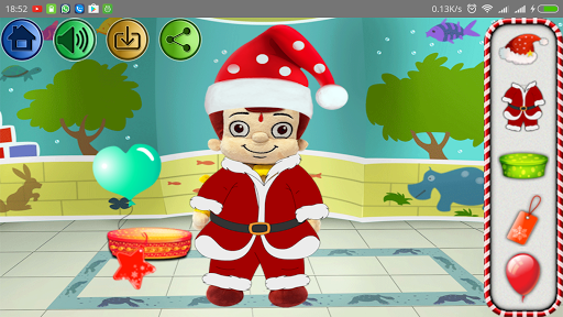 Dress up Chhota Bheem, Chutki, Kalia and then Raju in Christmas clothes.