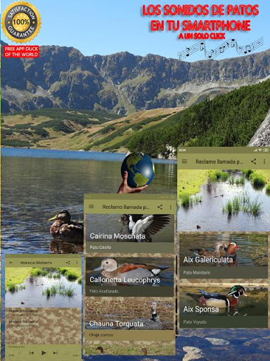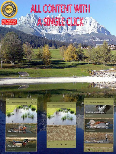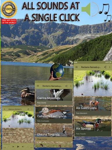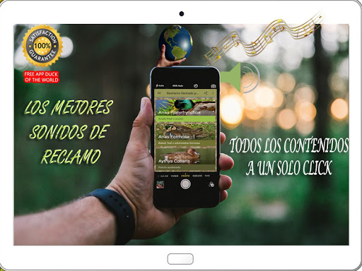 Enjoy the application called call for ducks: Sounds of aquatic birds more complete free of all the world, where you will find a selection with a clean sound of songs of ducks. Install the application and turn your mobile phone into a professional caller of this wonderful bird. For a better effect you can connect to an external active Bluetooth speaker.