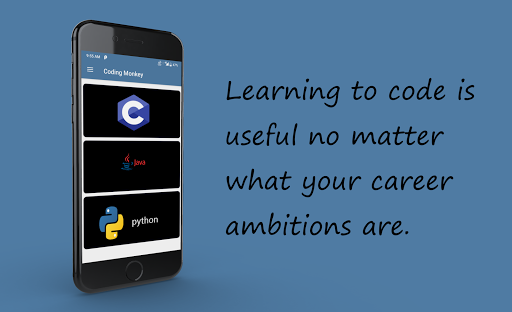 HTML, JavaScript, C, Android, Python, Java, CSS 등의 코드를 무료로 배우는 Monkey App을 코딩하여 원 스톱 앱 - "코딩 원숭이", Play Store 앱.