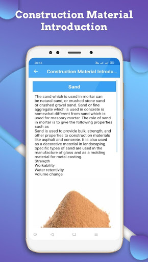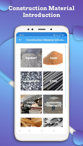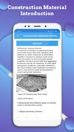 이 응용 프로그램에는 엔지니어가 알아야한다고 생각하는 중요한 건축 자재의 중요한 지점이 있습니다.이 앱에는 시멘트, 모래, 강철, 신선한 콘크리트 하드 콘크리트 목재 등과 같은 많은 부 섹션이 있으며 해당 재료로 가열 된 포인트가 포함됩니다.