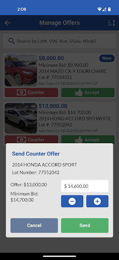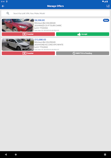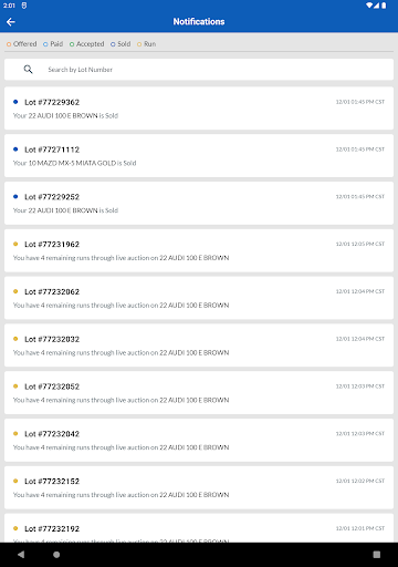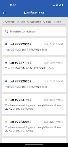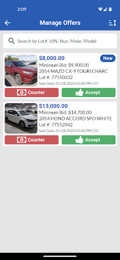 구매자가 제안을 할 때마다 스마트 폰이나 태블릿에 대한 푸시 알림을 받으십시오.Copart Go 앱 내에서 즉시 차량에서 제안을보고, 수락 및 협상 할 수 있습니다.