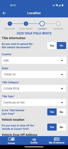 Copart Go 앱을 사용하면 차량을 쉽게 나열 할 수 있습니다.차량 사진을 찍고 VIN 번호를 스캔하여 앱 내에서 차량의 해를 디코딩하고 채우고, 제작, 모델 등을 채우십시오.편리 할 때 과제 초안을 저장하여 편리 할 때 완료 할 수 있습니다.